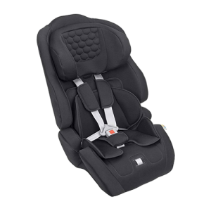 Cinto de segurança de 3 pontos com protetores de ombros acolchoados, ganchos laterais que facilitam na hora de acomodar ou retirar a criança e capa lavável na máquina.