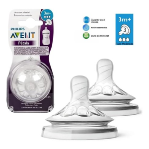 O bico AVENT com design de pétala, com extra flexibilidade, possui design de pétala para que o bebê possa abocanhá-lo como se fosse o seio, além do novo design do bico em espiral, que é mais flexível. O bico pétala facilita a amamentação pelo seio e pela mamadeira.