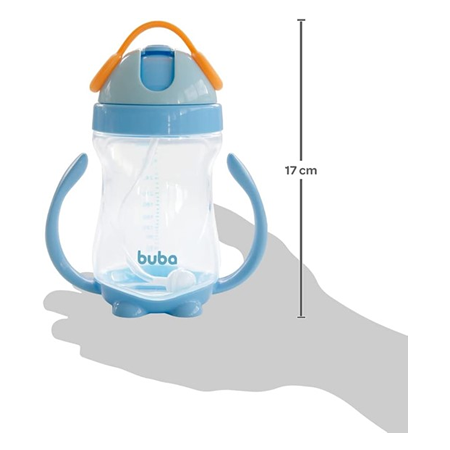 A Copo com Alça da Buba é ideal para o dia a dia do pequeno. Possui válvula que acompanha o líquido e permite beber em qualquer posição sem ingerir ar, prevenindo o acúmulo de gases. Com canudo em silicone macio e capacidade para 300 ml, acompanha as diferentes fases do bebê.