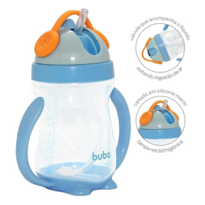 A Copo com Alça da Buba é ideal para o dia a dia do pequeno. Possui válvula que acompanha o líquido e permite beber em qualquer posição sem ingerir ar, prevenindo o acúmulo de gases. Com canudo em silicone macio e capacidade para 220 ml, acompanha as diferentes fases do bebê.